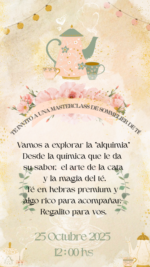 Nos vemos para un encuentro único donde podrás conocer nuevas amistades, degustar algo delicioso, y conectarte profundamente con los aromas y perfumes del té, mientras aprendés y te convertís en un gran anfitrión. 🌸😋
